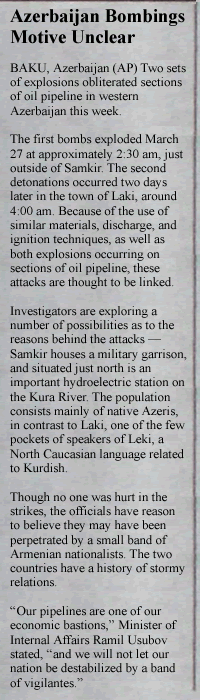 Within two weeks of the game's close, British Petroleum announced the successful completion of their pipeline through Azerbaijan.